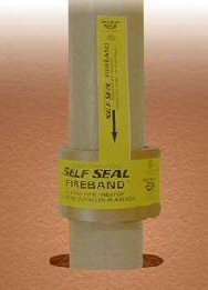 SELF SEAL® FIREBAND is an intumescent silicone rubber wrap strip encapsulated within a poly bag and is designed to seal combustible pipe penetrations in fire-rated walls and floors. The wrap strip is tightly wrapped around the combustible pipe and held in place with an adhesive strip on the bag. The silicone composition exhibits excellent performance stability and when exposed to temperatures in excess of 300OF (150OC) it will begin to expand. As the pipe softens and collapses under fire conditions, the silicone composition will rapidly intumesce to fill the void with a patented char composite that contains expanded graphite. The wrap strips are pre-fabricated to fit 1-1/2” (38 mm), 2” (51 mm) and 3” (76 mm) trade sized pipes.