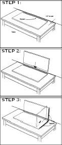 Step 1: Place “bottom” glass on flat surface along side a 90° vertical surface about 12.7mm