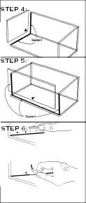 use soap or detergent to clean the glass as they are toxic to fish and will reduce adhesion of the sealant. It is also important that any uncured sealant not be wiped off the glass with paper towels as they can cause smearing and leave lint on the surface, requiring additional clean up later. Make sure that your work area is large enough and well protected from accidental contact with uncured sealant. Once you have laid out all the parts of the tank, it is important that you p roceed with the construction without delay as the sealant will start to “skin over” in a few minutes and then may not adhere properly to the glass.
