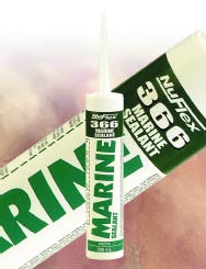 NuFlex 366 Marine Sealant is a 100% medium modulus, one component caulking material with a consistency similar to that of toothpaste. NuFlex 366 cures to a tough, rubbery solid upon exposure to moisture in the air. Because it does not flow due to its own weight, this sealant can be applied overhead or on sidewall joints and surfaces without sagging, slumping or running off. It adheres to clean metal, glass, most types of wood, silicone resin, vulcanized silicone rubber, ceramic, natural and synthetic fiber, painted surfaces and many plastics. NuFlex 366 has good resistance to weathering, vibration, moisture,